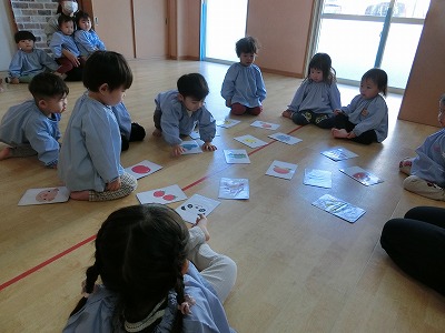 先生とやりとりをしながら絵カードカルタを楽しみました!