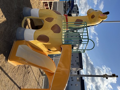 きりんの滑り台の滑り台部分も、長年の使用で削れてきていましたので、新しい滑り台に交換しました✨